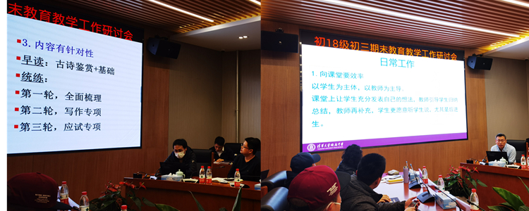 随后,初18级语文备课组和数学备课组进行了经验分享。两位备课组长毫无保留地介绍了他们的创新做法。语文备课组的作文提升激励制度,数学备课组的学生讲解团等都让老师们深受启发。