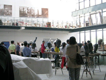 下午老师们回到清华参观了清华美院,走进美院,老师们就被清华美院强烈的艺术气息所吸引,在工作人员的引领下,老师们参观了雕塑、编织、金属加工、服装设计等工作室,通过参观,老师们不仅欣赏到了各式各样精美的艺术品,同时也亲身感受到了艺术品加工的过程。