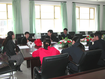 林静姿老师(左3)与区英语教研员、上庄二中教师等座谈 徐蓉老师(正面左2)与区数学教研员、上庄二中教师等座谈