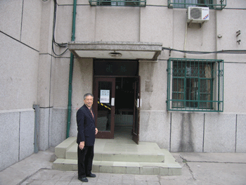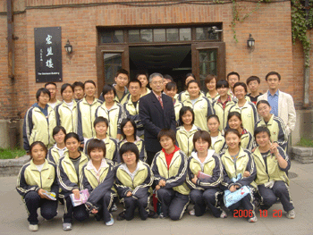 马鼎盛先生在他当年住宿的宿舍门前留影 讲座后马鼎盛先生与附中学生合影