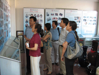 检查团听取高策理校长的工作汇报 检查团参观澳门网上博彩校史展室