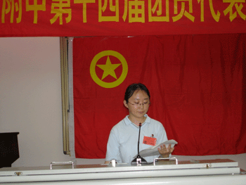 9月15日下午,大会闭幕式在庄严的国歌声中开始。刘俊副校长、周兆玉副书记、德育处主任杜毓贞、副主任黄丽梅、罗春霞以及团委学生会的田敏、文磊、俞家新、高昕、金云等老师出席了本次会议。初一年级的少先队员们在大会上朗诵了精彩的献辞。上届团委委员、策划部部长宋迪同学和上届学生会主席穆浩远同学分别针对一年来团委、学生会的工作做了详细而具体的报告。周兆玉副书记宣读了团委书记的任命决议。接下来,大会公布了通过选举和考察而产生的28名新一届团委学生会干部名单,并对上届工作成绩优异的学生干部给予表彰。新一届团委学生会代表宣读了《构建和谐文明的校园环境》倡议书。刘俊副校长也在会上讲话,他在向新当选的干部表示祝贺的同时,提出了对他们的要求和殷切希望。
