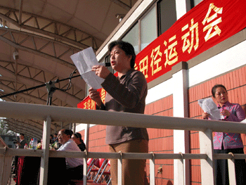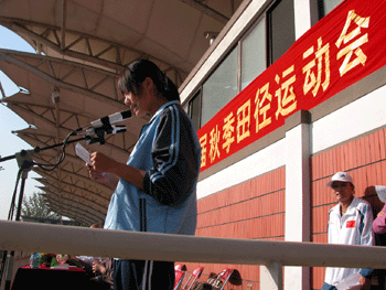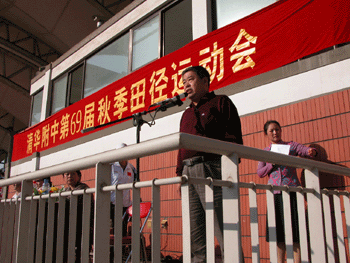 运动员代表高0609班孙妍发言 清华大学体委副主任张启明讲话