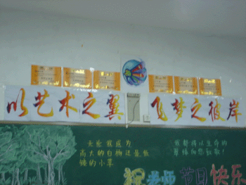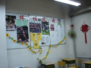 10月12日,澳门博彩在线团委在全校组织开展“布置特色教室,展示班级文化”教室文化环境的评比活动,团委宣传部的人员担任评委。各班同学悉心布置的教室令评委们大为惊叹,每每走进一个教室,都可以看到被精心装点的墙壁,板报。有的班墙壁被同学用很温馨的色调画上了花纹;有的班贴上了自己设计的班徽,还有的班墙上贴着同学们用干花制作的相框,给人以耳目一新的感觉,教室各处都可以看到同学亲手制作的饰物……其用心程度是显而易见的。