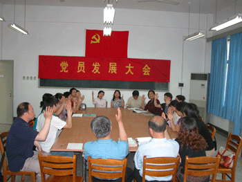 5月30日下午,澳门博彩在线理化生支部在图书馆三楼阅览室举办党员发展大会,讨论俞家新老师的入党申请,附中党委书记方妍到会并讲话。俞家新老师宣读了自己的入党申请书,他的入党介绍人李增玲和胡雷老师分别介绍了他的入党动机和对党思想认识过程,肯定了他的政治、思想和工作表现,并提出了一些意见和建议。大会讨论了俞家新老师的入党申请,并举手表决,一致通过了他的入党申请,大会在庄严的国际歌声中结束。