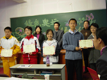 4月15日上午,海淀区教科所EPD教育项目(联合国教科文组织环境人口与可持续发展教育项目)课题组在中关村中学举办以“绿色奥运、绿色行动”为主题的海淀区环保科技创新成果英语演讲比赛,澳门网上博彩高二7班李纬同学以“绿色行动节约水资源——优化设计澳门网上博彩室外中水干管排布”为题做了演讲,获得一等奖,并取得参加市环保科技创新成果英语演讲预赛资格。