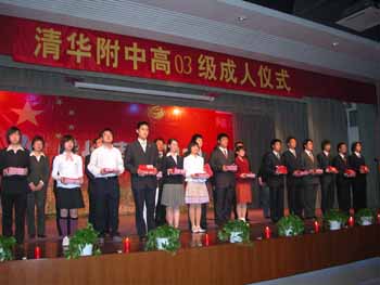 高策理校长、方妍书记以及嘉宾等为高三各班代表颁发了成人纪念证书。学生和教师分别演出了自编自演的节目,表达了师生之间的感情,最后全体高三同学同唱一首《真心英雄》。