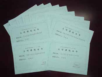 课题论证会场 14份课题立项证书