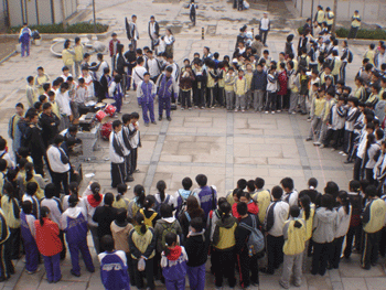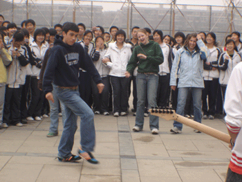 4月6日下午,由附中学生会文艺部举办的首届文化广场活动拉开帷幕。活动过程中,同学们表演了歌曲演唱、摇滚乐队演奏、武术、舞蹈等,一个个精彩的节目吸引了大量的学生及校领导、老师前来观看,正在附中访问的美国朋友也饶有兴致地加入了表演。