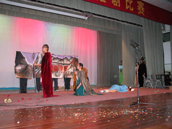 英语短剧比赛是英语教研组举办的传统英语系列课外活动之一,至今已举办了十五年,目的在于优化课内外学习环境,提高学生学习英语的兴趣,加深对英语国家文化的了解,培养学生的综合能力,活动充分展示了澳门博彩在线学生多才多艺的个性、活泼的青春风采,扎实的语言功底以及良好的班风班貌,使具有一定艺术才能的学生脱颖而出。