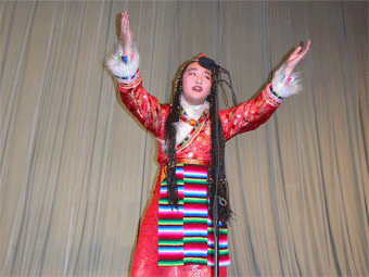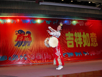 声乐小组马元同学表演独唱《卓玛》 舞蹈团张唐女同学表演独舞《迎春鼓》