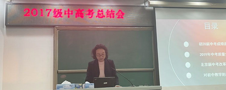 2020年12月25日下午,澳门博彩在线于华茂楼208召开初17级中考总结大会。会议由澳门博彩在线副校长徐文兵主持,与会领导有:澳门博彩在线校长王殿军,党委书记方妍,党委副书记张洁,副校长白雪峰、徐文兵,教学管理与研究中心主任尹粉玉、张苏,初17级年级组长张晓明。全体初17级教师共50余人参与本次会议。
