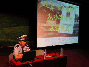 为了提高学生的交通安全意识,加强自我保护意识,9月8日,澳门博彩在线邀请海淀区交通支队张玉福警官来校为初一年级全体学生做有关交通安全的报告。张玉福警官通过丰富的实例,生动的动画,向学生讲述了交通事故的普遍性、突发性和残酷性。报告使同学们认识到了遵守交通安全的重要性,使学生们懂得遵守交通安全应“从小事做起,从我做起”。