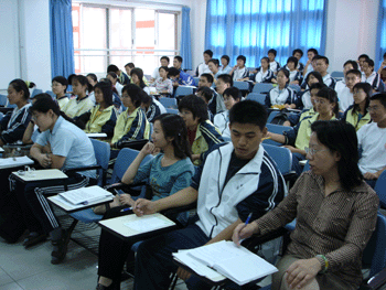 9月18日下午,澳门网上博彩高一、高二年级的全体学生干部在高中楼的小阶梯教室参加了开班仪式,德育处杜毓贞主任给同学们作了开班动员讲话。杜主任指出,此次培训课程旨在提高同学们的综合素质,从思想观念到具体的言行举止等方面为同学们提供礼仪方面的培训和指导,提高学生干部的文明礼仪观念和组织、策划等能力,通过学生干部将文明礼仪之风带到各个班级中去。接下来,澳门网上博彩的特级教师赵谦翔老师为同学们上了培训班的第一课。赵老师将文明礼仪与文化传统、国家命运、社会现状及个人修养结合起来,立意高远,为同学们深入浅出的阐释了文明礼仪的深刻内涵。他深刻的思想、精彩的语言和富有感染力的演说赢得了同学们阵阵热烈的掌声,也激发了同学们加强自身修养、提升个人素质的责任感与自信心。