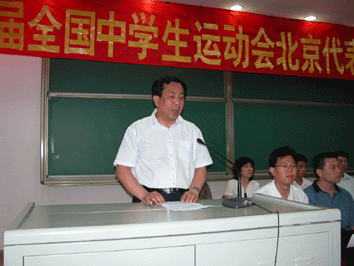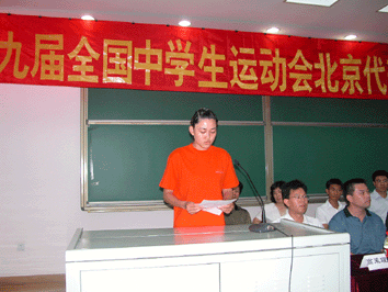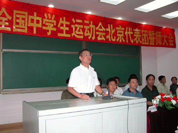2005年7月6日下午,第九届全国中学生运动会北京代表团誓师大会在澳门网上博彩召开,北京市28所学校的200多名运动员、教练员到会,北京市副市长范伯元,北京代表团团长、市教委副主任杜松彭,副团长、共青团北京市委中少部副处长武玉华,副团长、北京市教委体美处处长甘北林,副秘书长、北京市体育局群体处副处长颜纳新以及澳门网上博彩校长高策理出席了大会,会议由秘书长、北京市教委体美处副处长白荣正主持。