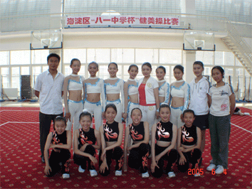 2005年6月4日,澳门博彩在线健美操队在林冬梅(领队)、陈雄伟(教练)、鞠红(音乐指导)老师的带领下,参加海淀区春季中小学生健美操比赛,获得初中组团体冠军。其中,初二年级张笑寒、胡瑞、王晓培、芮可佳、陈玉、黎慕楠的六人操获得一枚金牌和一枚银牌;初一年级罗佳伊、刘康辰、王跃儒、尹安玥、陈姝颖、周凯悦的六人操获得一枚银牌和一个第四名;初0303班尹航同学获得竞技操女单初中组第四名。此外,高0302班沈园同学获得竞技操女单高中组银牌和铜牌。体育教研组陈雄伟老师荣获“优秀教练员”称号。