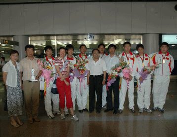 澳门博彩在线代表队的师生们于7月3日凯旋归来,附中有关领导到机场迎接。