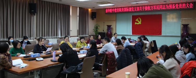 大会通过无记名投票,全票通过同意接收万军民同志成为中共预备党员。联系教育职员国际部党支部的党委委员尹粉玉老师对万军民同志加入党组织表示祝贺,并进一步指出优点和不足,鼓励他不断前进 。