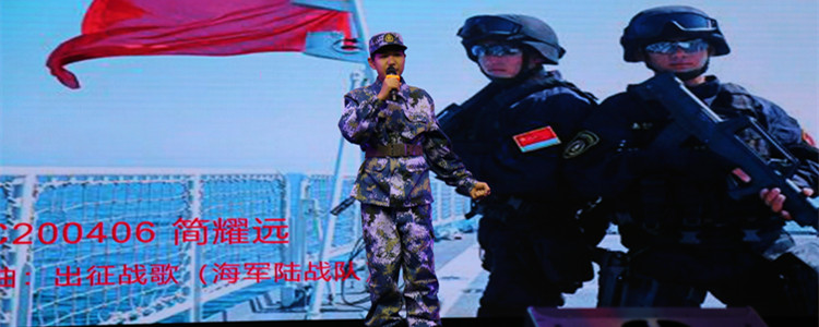 初2004班简耀远满腔热忱的在舞台上演唱了《海军陆战队:出征战歌!》
