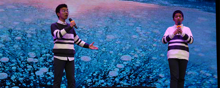 总决赛主持人(左:初1909班 于铠铭,右:初1911班 杨灵畅)