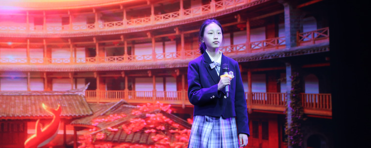 初2010班刘彦哲用极具穿透力的天籁之音深情演唱了《我和我的祖国》。