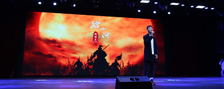 初1905班侯冠呈满怀对古今英雄的敬畏之情演绎了一曲《踏山河》。