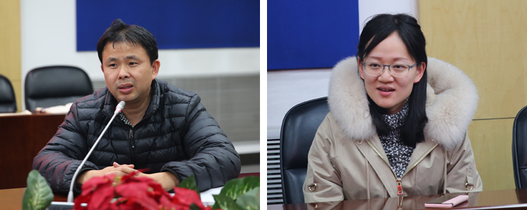 高中化学教研组组长陈新福(左)高中语文教研组组长邹明(右)发言