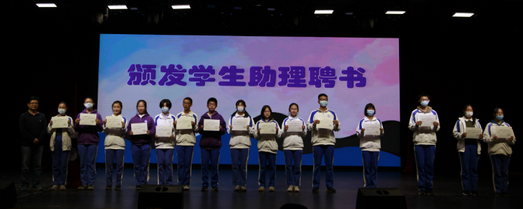 活动尾声,年级组长张彪给各班学生助理颁发聘书,鼓励他们积极担责,在奉献中成就自我。