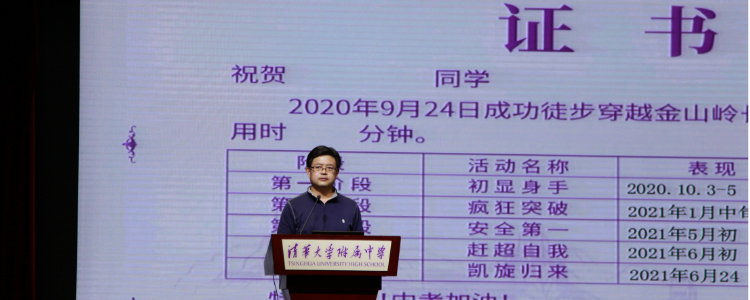 最后,张彪总结发言。他高度赞扬了同学们在徒步穿越金山岭长城活动中的表现并详细解读了徒步穿越金山岭证书的设计寓意。他希望同学们在期中考试中能“初显身手”,在期末时能够“疯狂突破”,一模二模阶段“安全第一”,求稳求进,在经历“赶超自我”后,最终能“凯旋归来”。