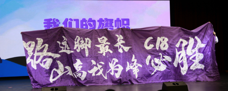 活动现场还展示了徒步穿越金山岭长城活动的旗帜和宣言。徒步穿越前,每个班领到一面旗帜。成功徒步穿越后,每位同学在旗帜上签字。当十四面旗帜汇在一起,成就了“路远脚最长,山高我为峰。初18必胜!”