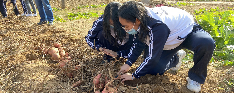 挖红薯听着简单,实际操作起来却十分困难。垄上的土经过雨水的冲刷,已经凝结成硬块,十分难挖。而且红薯在地下的位置难以判断,往往一铲子下去,红薯就断成了两半。经过最初的摸索,同学们很快上手,挖出的红薯渐渐成堆,一个多小时后,几百斤红薯全部出土。同学们在红薯堆前合影,脸上带着丰收的喜悦。中午,同学们吃了汇爱康桥学校的黄老师和田老师准备的午餐,稍作休息,又积极投入到了下午的劳动中,向着辣椒树与鬼子姜发起冲击。每位同学都感受到了劳作过后的获得感和幸福感。