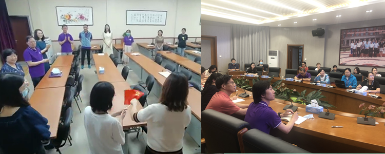 各党支部热烈讨论习近平总书记在庆祝中国共产党成立100周年大会上的重要讲话,畅谈中国共产党的百年历程,带领中国人民披荆斩棘,实现中华民族的伟大复兴。政史地教研组联合党支部党员刘景奎老师写道:“1840-1949,世纪磨难,为救国,代代先仁志士上下求索。1921-2021,百年荣光,图复兴,辈辈共产党人创造功勋。”理化生教研组联合党支部党员刘健写道:“请党放心,强国有我!少年们铿锵的誓词振奋人心!国家有未来,民族有希望!我辈更感肩负的责任和使命,为祖国培育合格的接班人,为下一个百年的新征程,实现中华民族的伟大复兴奉献而奋斗!”语文艺术教研组联合党支部党员那妮写道:“画一幅红旗,触摸太阳的温暖;唱一曲红歌,扬起革命的风帆;剪一颗红星,激荡理想的火焰。时代青年勇登攀,红色薪火永相传!”。教育职员与国际部党支部特别结合组织发展工作,邀请全体积极分子分享庆祝建党100周年的喜悦,交流学习感受,同时即兴朗诵了数学技术教研组联合党支部何晨丽、徐蓉以及离退休党员赵谦翔三位老师在观看大会后的诗歌。