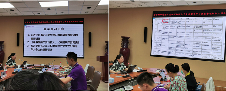 9月2日下午,澳门博彩在线外语体育教研组联合党支部在澳门博彩在线培训楼一层会议室开展党史学习教育专题组织生活会。清华大学党史学习教育联系指导组组长金兼斌老师、指导组成员李希浩老师和指导组联络员钱浩君老师、外语体育教研组联合党支部全体党员和预备党员参加了本次党史学习教育专题组织生活会。