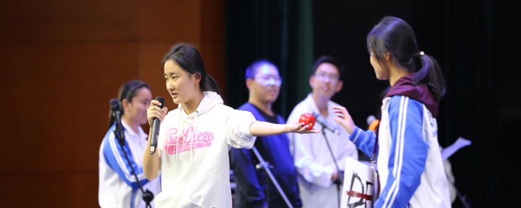 比赛中,每到抽签环节,同学们都欢呼雀跃,热情高涨。同时,本次比赛还设置了一个“精彩展示”环节:在比赛接近尾声时,由四组在班内预演中表现优异的队伍进行表演。此环节将现场的气氛又一次推向了高潮。