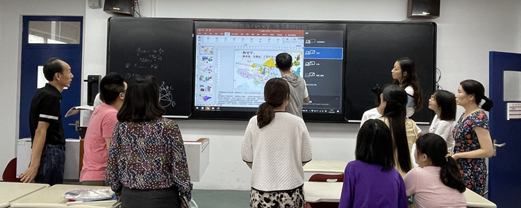 专业讲解老师首先进行“视频展台赋能课堂教学应用”主题培训,系统介绍了暑期新安装的视频展台使用方法,演示课堂教学中运用视频展台助力课堂教学。随后,周建军老师作为学校“应用智慧黑板助力课堂教学”的教师代表,以幽默精炼的语言,耐心细致得向全体教师进行“借助智慧黑板和软件助力数学课堂教学”专题演示,淋漓尽致地展示了“技术赋能常态教学”,极大得激发了教师们的学习热情。