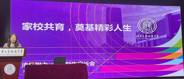 9月11日下午,澳门博彩在线高21级举办新生家长会暨第一期家长学校讲座。校长王殿军,党委书记方妍,副校长解巨钊、赵鸿雁,党委副书记张洁,副校长白雪峰、徐文兵,教学管理与研究中心主任尹粉玉,学生发展中心主任李书霞,高21级年级组长李劲松,年级副组长唐洁,高21级全体班主任,高21级全体家长,共计750余人参加。本次讲座由学生发展中心李书霞老师主持,采取线下参会、线上转播的方式进行。