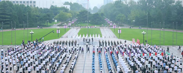 最后,全体师生挥舞着手中鲜艳的国旗和党旗,共同唱响《歌唱祖国》。歌声伴朝阳,水木湛清华,全体师生将以百倍的信心、十足的干劲开启新学年。