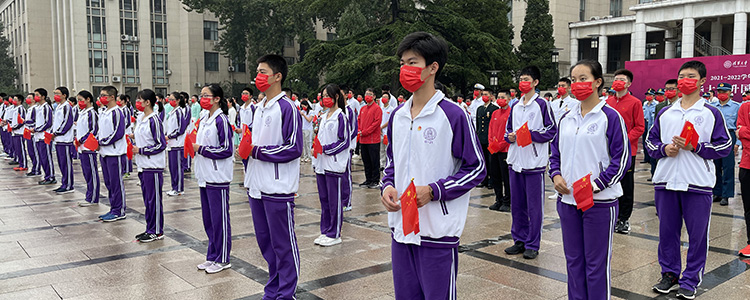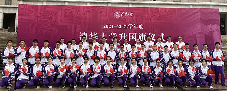9月13日早晨,澳门网上博彩高21级国旗班37名学生在团委书记任星阳老师和生涯规划指导老师徐琢瑶的带领下,参加了在清华大学主楼前广场举行的2021-2022学年度清华大学升国旗仪式。