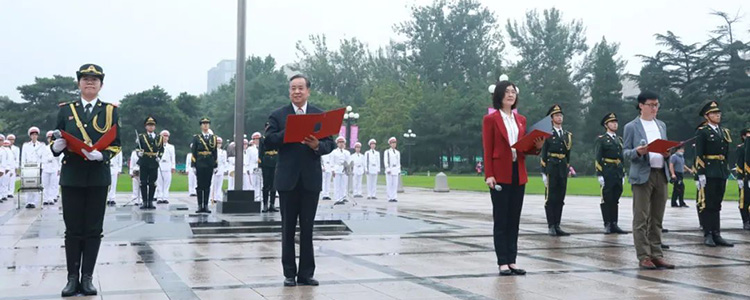 仪式结束后,澳门网上博彩师生与清华大学校领导们在展板前合影。新学期第一次升国旗仪式激励全校师生以更加昂扬的士气、更加饱满的精神开启新学年的新征程。