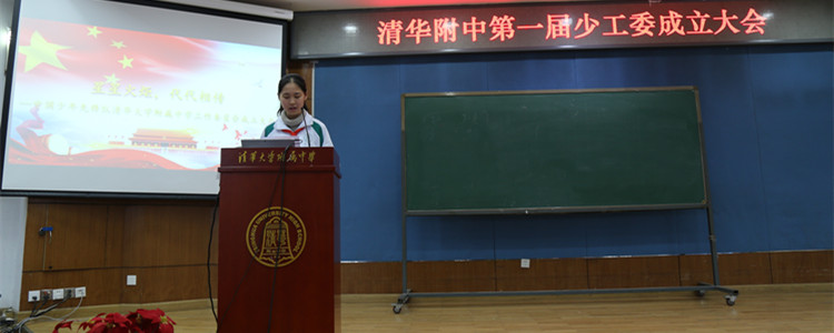 在激奋人心的国歌声中,少工委成立大会正式开始。伴着铿锵有力的出队旗音乐声,旗手高举中国少年先锋队队旗,在护旗手的护卫下,迈着矫健的步伐走上舞台,鲜红的队旗迎风飘扬。