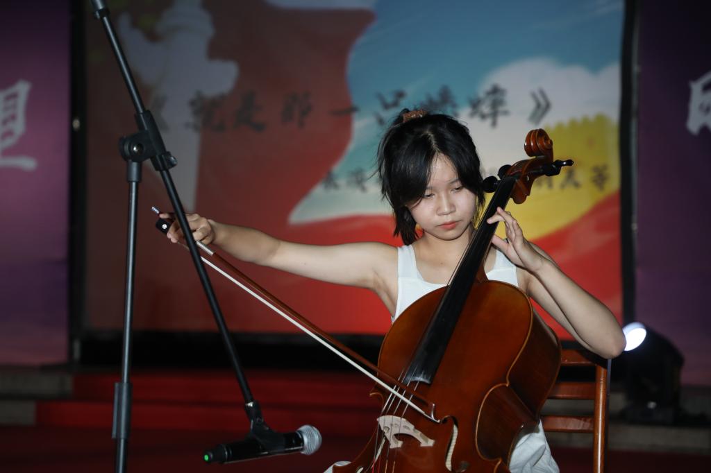 中华文明五千年的文化底蕴,在《龙文》独唱和古音朗诵《水调歌头·明月几时有》中体现,当台上的同学展示作品时,书法文化的厚重感扑面而来。中国民族民间舞《卓玛与朵乜》则展示了中国少数民族独特的风俗文化,欢快的伴奏与优美的舞姿相结合,引起了台下阵阵掌声和惊叹。