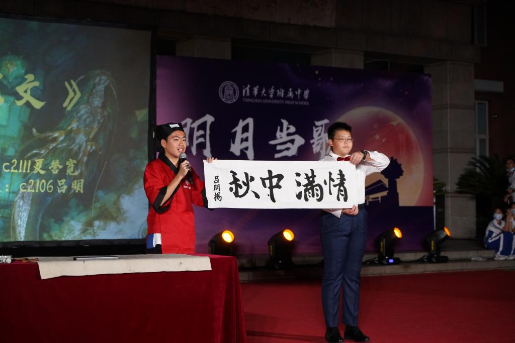 2021年是中国共产党百年华诞,本届中秋诗会附中师生以“百年遥望、明月当歌”为主题,在昂扬向上的诗风词韵中,向伟大的党表达了最真挚、深情的祝福。