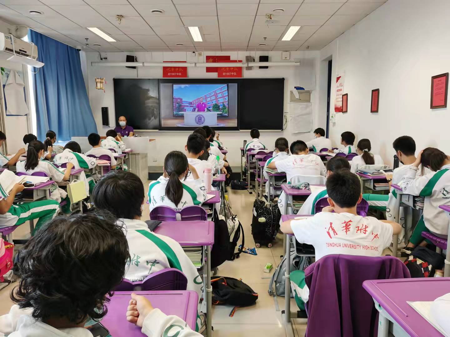 高20级学生认真观看班会课播放的校园文明短片