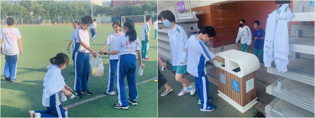初2112班同学践行文明附中人承诺,在学校操场捡垃圾