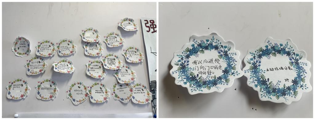 班会课以校电视台拍摄的校园文明小短片导入,通过学生在教学楼墙壁上留下的涂鸦,引发师生思考与讨论“对学生乱涂乱画行为的看法”。