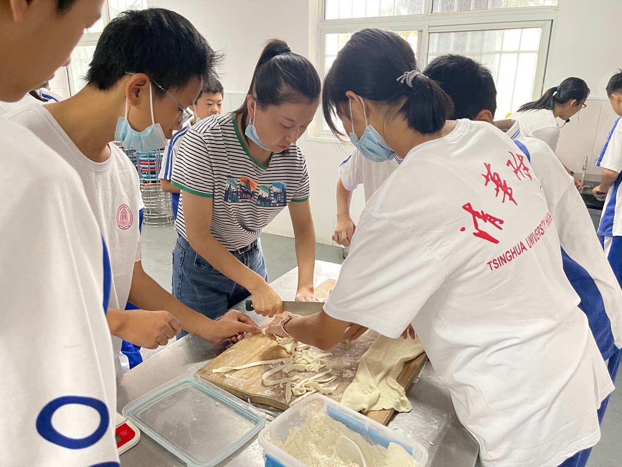 在教室里学习完制作饸饹面和花样馒头的理论知识,同学们不仅收获了知识,也深切地体会到了食物的来之不易。听完课,大家去劳动教室开始亲身动手啦!