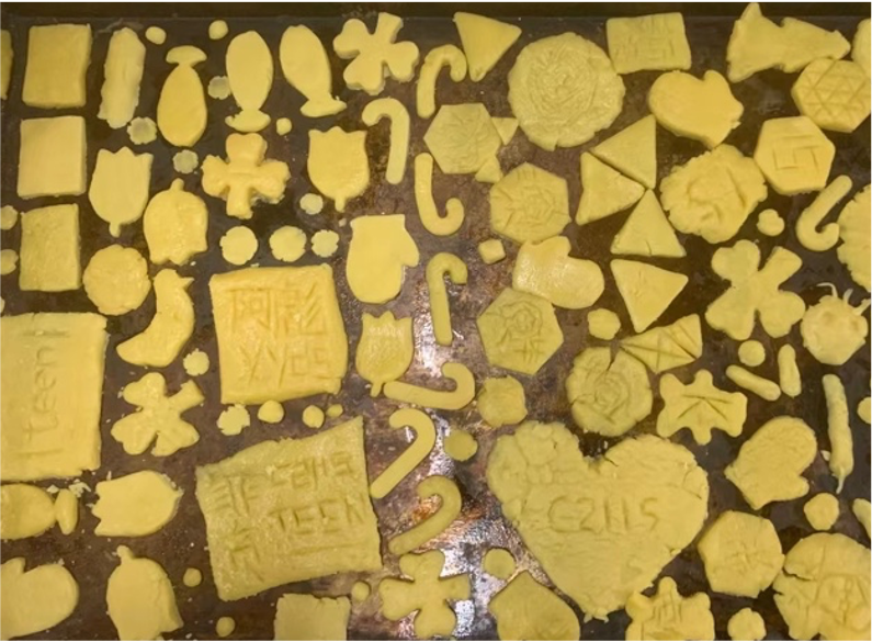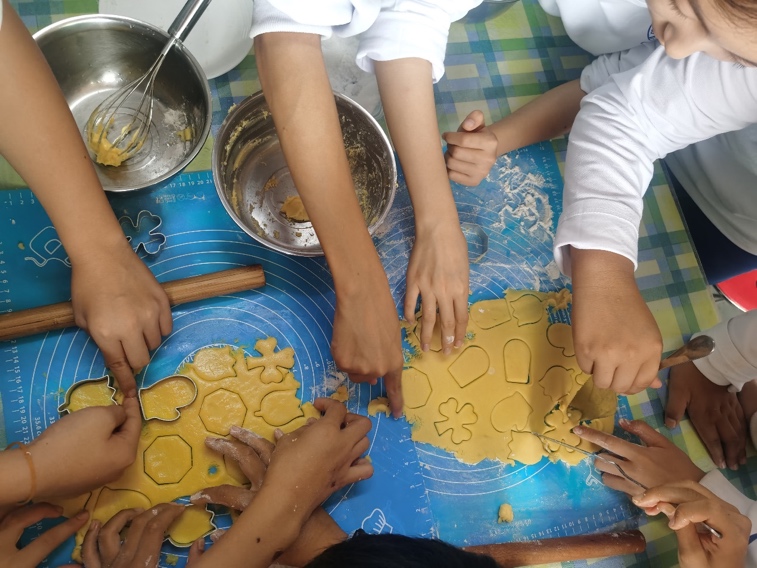 在制作饼干的过程中,同学们纷纷感慨,没想到平时常见的小零食,制作起来也并不简单。尽管程序复杂,要求精准,同学们还是很快就做出各种形状有趣的饼干。