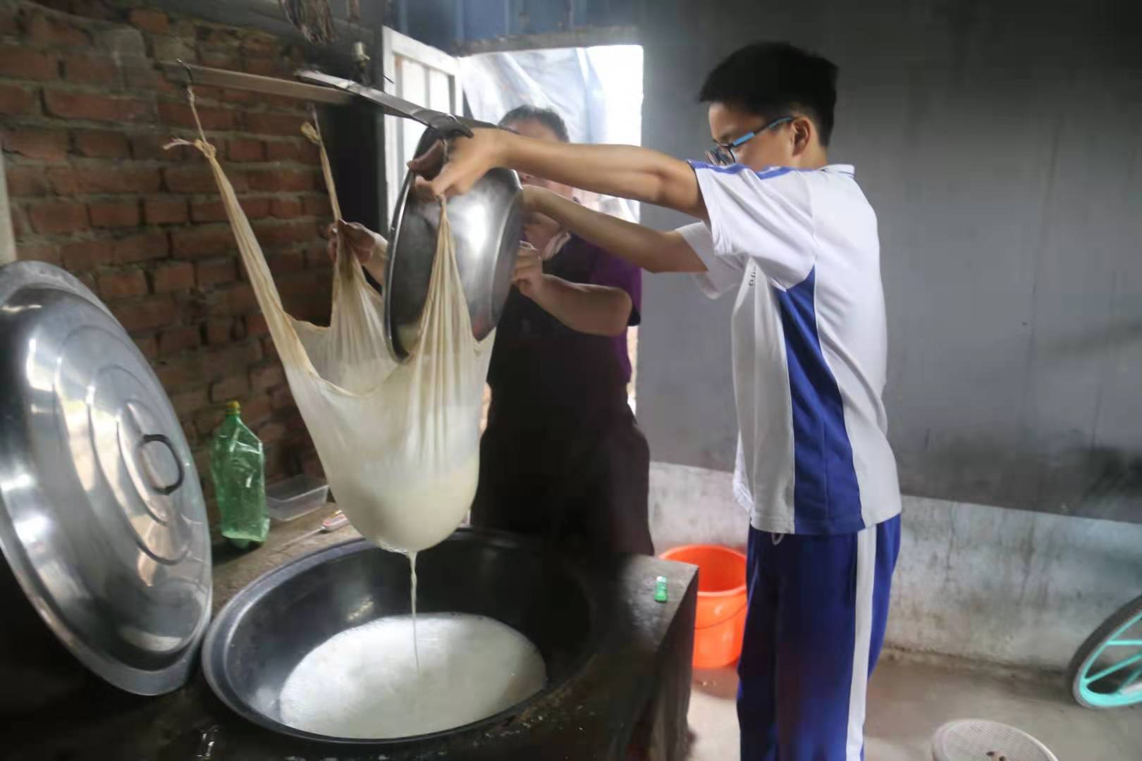 自古有三桩苦差事:打铁、撑船、磨豆腐,因为做豆腐需要起早贪黑。同学们体验了做豆腐的繁复过程之后,除了收获满满成就感,也蓦然心生对劳动者的敬畏。