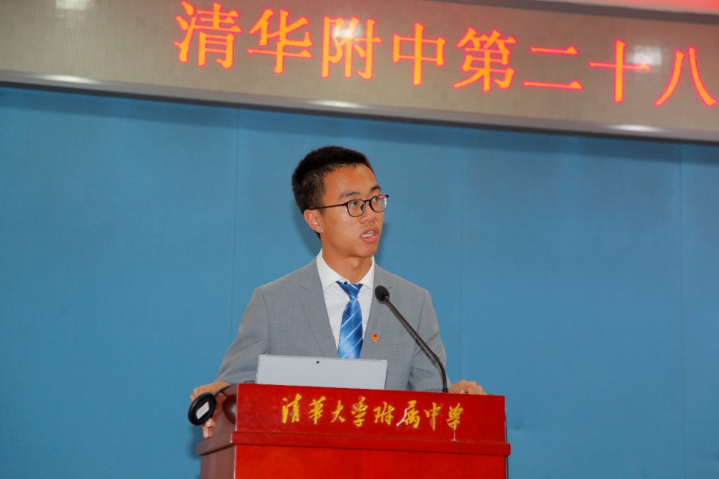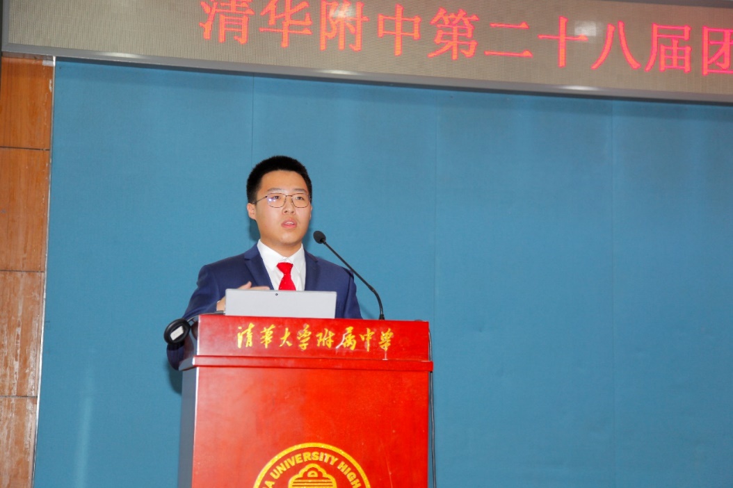 大会由团委副书记宋清岳主持会议。首先,第二十七届团委委员、团委副书记沈芸伍汇报了上2020-2021学年度的校团委工作报告。他汇报了团委围绕“建党百年”主题开展的系列活动,如我身边的党员,绘制黑板报,知识竞赛等,还汇报了过去一年各部门的活动,如组织部发展了新团员,进行五四评优,团日志评优,党史知识竞赛等活动。策划部组织历史革命短剧,成人礼。宣传部检查班级外墙布置,开展“校园文创产品设计活动”。秘书处负责公众号新媒体平台的建设。云栈编辑部以编辑校刊为主要工作,还举办了飞花令诗词大赛,诗歌写作活动。校园电视台坚持每两周一次的校园新闻,拍摄运动会等大型活动,组织第十二届微电影节,定期推送微信公众号。尽管这一年是充满挑战的一年,但是各部门通力合作都尽全力完成自己的职责,带来许多精彩纷呈的活动。最后,沈芸伍同学祝愿所有高三学子学业有成,祝愿所有新团员尽显锋芒,将团委活动推向新的高度。