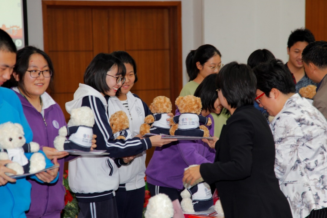 老师们为第二十七届团委委员颁发纪念证书和校服熊